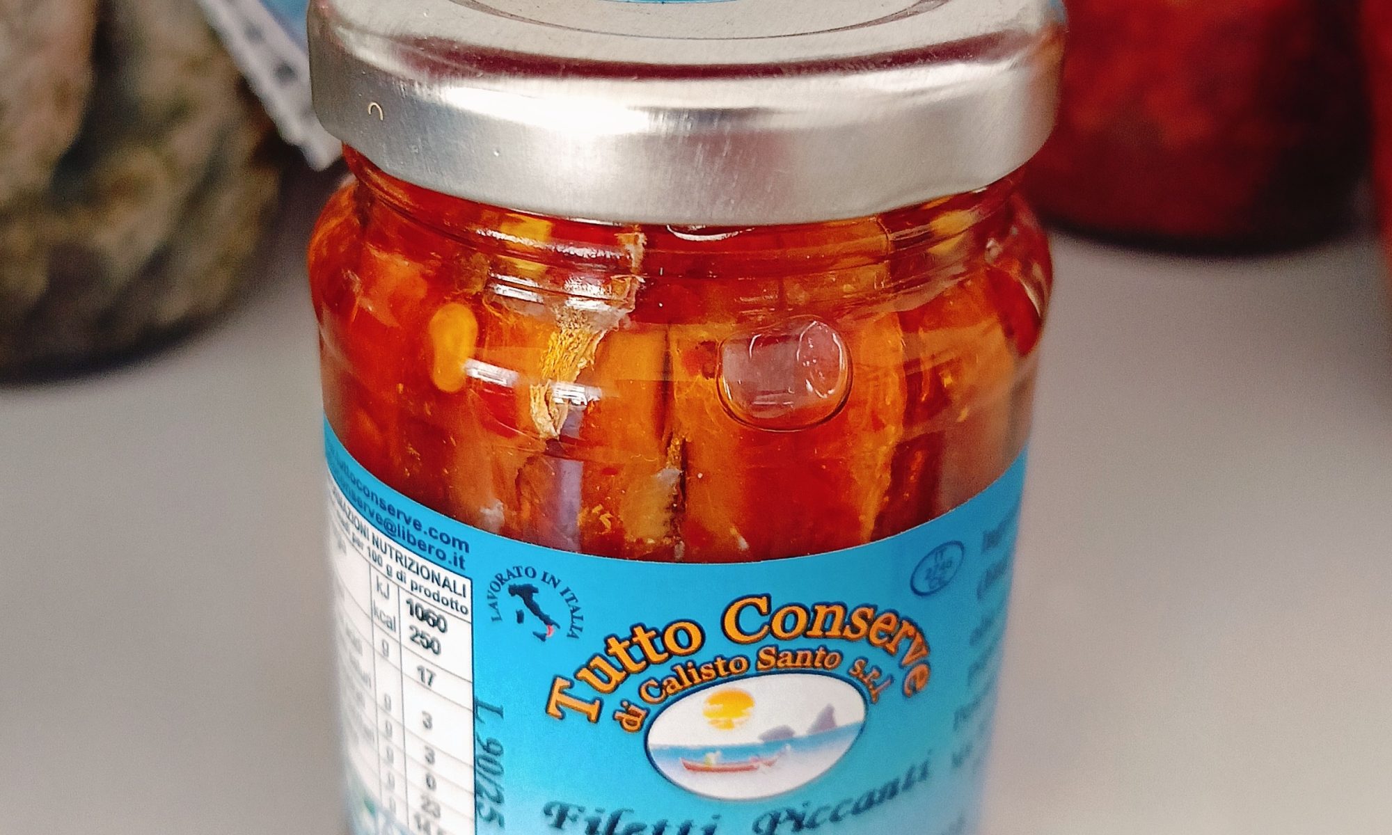 Filety anchois w oleju słonecznikowym z ostrą papryką i solą. Wykorzystywany do wzmocnienia smaku potraw,  idealna przekąska oraz dodatek do dań (makaron, pieczywo, pizza, mięso).
