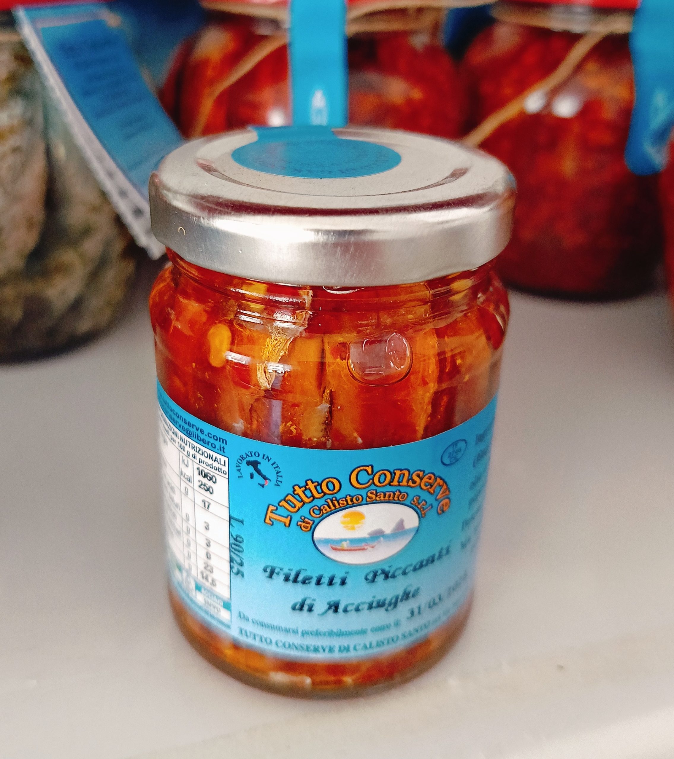 Solone i zamarynowane w oleju słonecznikowym, z dodatkiem papryki peperoncino, sardele europejskie. Charakteryzują się bardzo intensywnym, słonym, a jednocześnie umamicznym (głębokim, mięsnym) smakiem, Choć często mylone, anchois są mniejsze i mają znacznie bardziej wyrazisty smak niż sardynki. Klasyczny  dodatek do pizzy i tostów, dań z makaronem, sosów czy marynat do mięs. Samodzielnie nadadzą głębi smaku tatara, utarte z masłem stanowią idealny dodatek do steków.