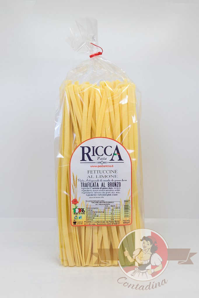 To aromatyzowany makaron o świeżym, cytrusowym charakterze, stworzony przez włoskiego producenta Pasta Ricca, specjalistę w makaronach premium od 1971 roku. Powstaje z wysokiej jakości semoliny pszenicy durum oraz naturalnego aromatu cytrynowego, który nadaje mu lekko orzeźwiający smak. Wytwarzany metodą tradycyjną, poprzez tłoczenie na brązowych matrycach, dzięki czemu powierzchnia makaronu jest porowata i doskonale chłonie sosy. Idealny do dań z owocami morza, masłem szałwiowym, śmietaną, pesto z rukoli lub lekkimi sosami kremowymi. To makaron, który wnosi do kuchni nutę włoskiego lata.