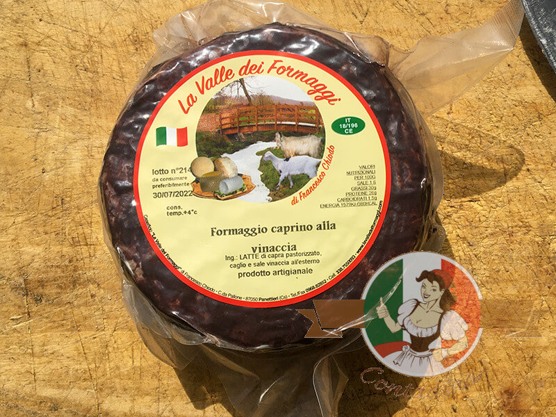 Włoski ser kozi dojrzewający w wytłokach winnych. Delikatny, aromatyczny i o wyjątkowym smaku czerwonego wina.