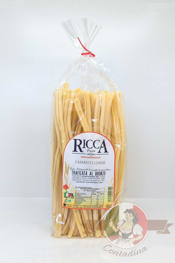 Tradycyjny makaron o unikalnym, skręconym kształcie, inspirowany domowymi recepturami włoskiego południa. Produkowany przez Pasta Ricca, rodzinne pastificio z doświadczeniem od 1971 roku, z użyciem semoliny pszenicy durum oraz wody źródlanej. Tłoczenie przez trafile z brązu nadaje mu szorstką, porowatą powierzchnię, która świetnie wiąże nawet gęste sosy. Dzięki powolnemu suszeniu fusilli zatrzymują intensywny smak i zachowują sprężystość gotując się „al dente”.