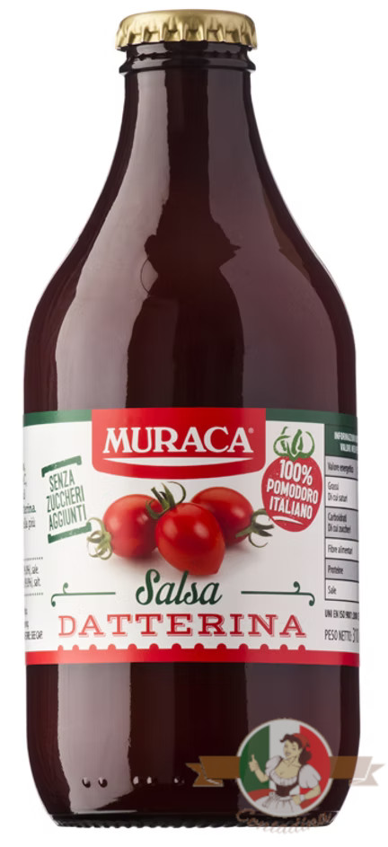 Odkryj autentyczny smak Kalabrii z Muraca Salsa Datterina – aromatycznym sosem z dojrzałych pomidorków koktajlowych. Idealny do makaronów, bruschetty, pizzy i jako baza do dań kuchni włoskiej. Produkt 100% włoski, bez cukru, konserwantów i sztucznych barwników. Gotowy do użycia, pełen naturalnego smaku włoskich pomidorów.